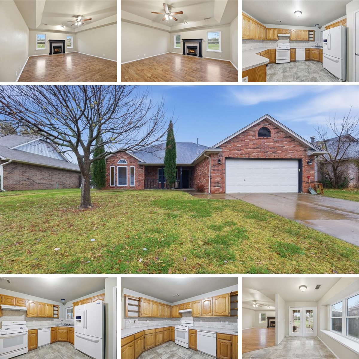 Spacious living room with a cozy fireplace welcomes you home! Enjoy the convenience of his and her closets and beautifully tiled showers in both bathrooms, including a walk-in shower in the hall bath. The washer, dryer, and refrigerator stay, making move-in easy. Home features newer windows and furnace for added efficiency. With a few finishing touches, you can make this home truly your own. Conveniently located near Highways 169 and 75, and just minutes from Owasso and Collinsville schools, restaurants, and shopping.