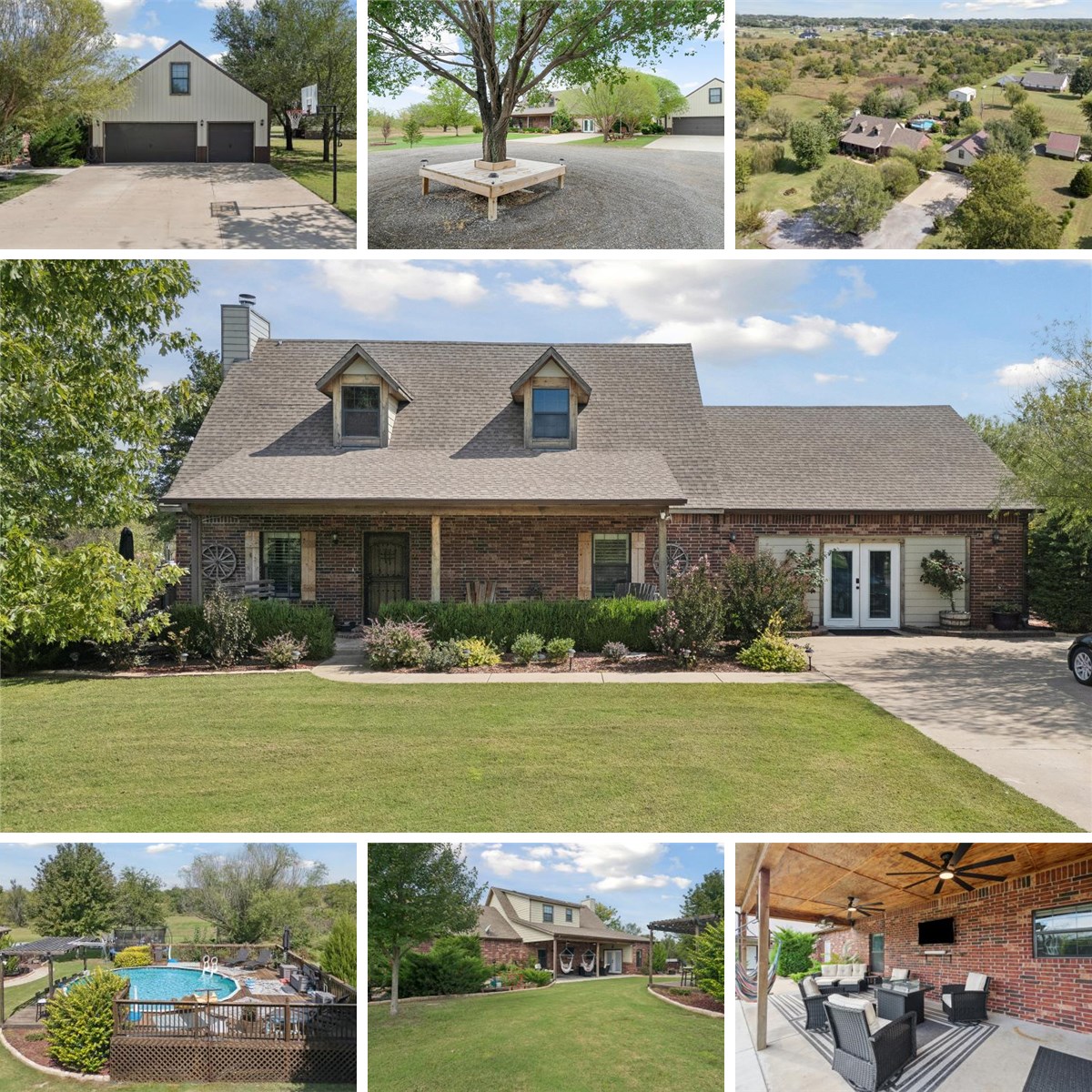 Looking for a home that is a STAY-CATION with loads of privacy? This is it!!! Privacy....pool with a slide, waterfall and swim up bar...GORGEOUS landscaping....outdoor projector screen for movie nights in the pool....side deck overlooking a pasture....firepit....huge covered patio....guest quarters above a 40x30 shop with heat/air for all those hobbies...plus another 20x12 storage shed. Beautiful one-owner, custom built 4 bedroom / 3 bath brick home on +/- 3/4 acre lot, in a peaceful country setting within the Owasso School District. The interior is reminiscent of a vacation cabin with an open floor plan, wood burning fireplace, beautiful kitchen with granite countertops, island seating for four, formal dining room overlooking the back patio, large master suite with direct access to the backyard, and the 4th upstairs bedroom can double as a game room with its own private bath. HUGE shop with plumbing, electric heat and air, plus it has a full bathroom and 600 sq. ft. finished living quarters above (not included in sq. ft.). Fantastic location with quick access to Owasso and Claremore. Home is ADA accessible.