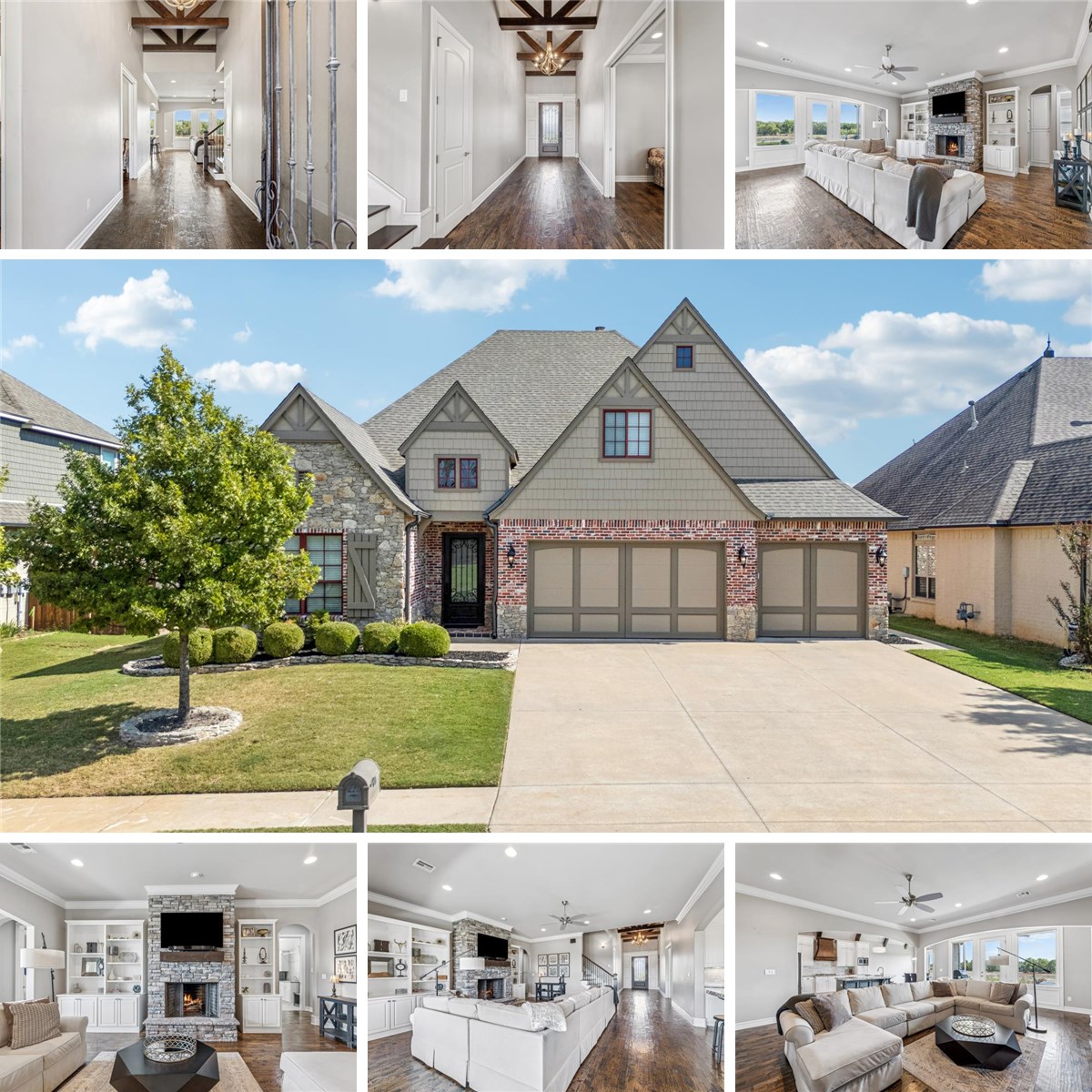 A 2015 Parade of Homes showcase, this 3,495 sq ft (Court House) residence blends timeless craftsmanship with thoughtful design in the highly sought-after Bixby School District. Offering 4 bedrooms, 3 bathrooms, a study/flex room, coffee bar, and breakfast nook nook, the home also includes a 3-car garage. Interior highlights feature hand-scraped hardwoods, chiseled granite counters, a butler's pantry, and two bedrooms conveniently located on the main level.