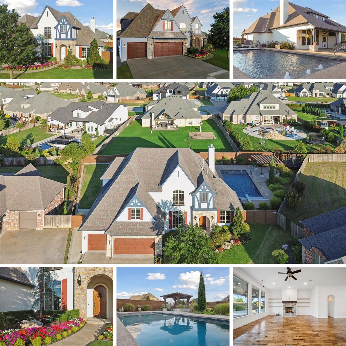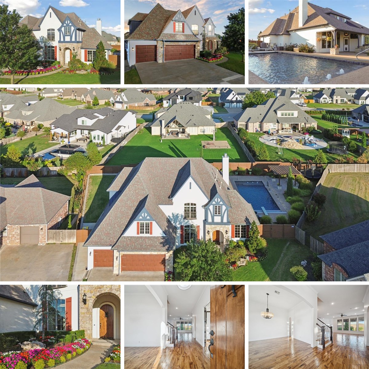 Built by Tulsa's luxury custom home builder Brian D Wiggs, this home is a former Parade Homes. Open floor plan, formal dining, 11ft ceilings standard, plus vaulted ceilings master suite and study. Kitchen has a huge built in double fridge & freezer, double ovens, soft close drawers, and massive granite Island space for 10 seats! The media/ theater room includes the theater seating sofa, projector, screen, and a/v equipment. There is an additional game room w/ dry bar & bev center mini fridge. 2beds down, 2 beds up all with private baths with granite counters, hand-scraped hardwoods down & upstairs. Temp control Pool that can be heated & COOLED (with a gas heater and a separate dedicated heat pump to cool it) with sun shelf, bubblers & power retractable safety cover. Multiple Outdoor destinations w/ a covered porch, a separate pergola making 2 outdoor seating areas with 2 outdoor fire pits, built in BBQ grill, and a heater for the covered porch. The sprinkler system has zones for potted patio plants. The 3 car garage features an epoxy floor, mini split HVAC, sink, storm shelter, existing shelving, cabinets, peg board, and water hookup for a fridge with / ice maker. There is a built in drop zone / mud room close to the laundry area. Mature professional landscaping and hardscaping.
