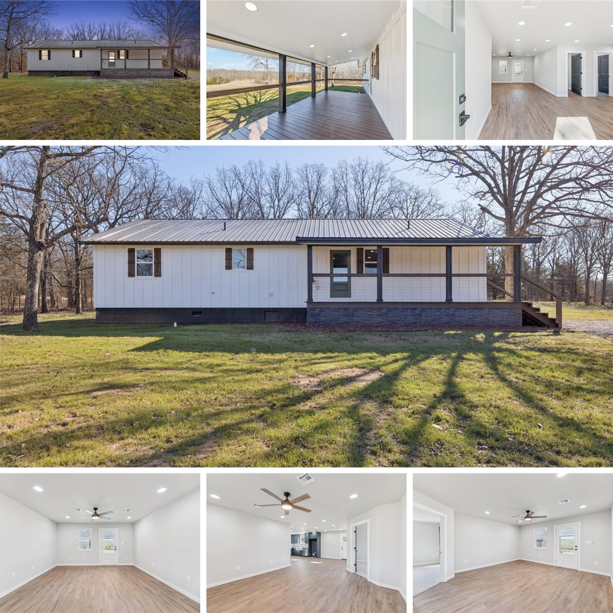 Completely renovated down to the studs, this stunning 3-bedroom, 2-bath home sits on 10+/- secluded acres and offers the perfect blend of modern comfort and peaceful country living. Thoughtfully redesigned with an open-concept layout and split floor plan. Renovations include a new metal roof on both the home and shop, along with updated plumbing, electrical, sub-flooring, insulation, windows, and siding. Inside, you’ll find LVP flooring throughout the main living areas, tile flooring and beautifully tiled showers in both bathrooms, and granite countertops with soft-close cabinets and drawers throughout the home. The kitchen shines with white shiplap accents, a farmhouse sink, stainless steel appliances, and an oversized pantry/laundry room with built-in shelving for storage. Step outside and enjoy the privacy of 10 acres offering a perfect mix of open, flat land and wooded areas—ideal for hunting, recreation, or your homestead dreams. The 800+ sq ft shop/garage offers endless possibilities and, with a few finishing touches, could serve as additional living quarters, a workshop, gym, or hobby space. Bring the animals, expand your homestead, and unwind on the oversized porch deck while watching breathtaking sunsets. This is country living at its finest—fully renovated and ready for its next owners!