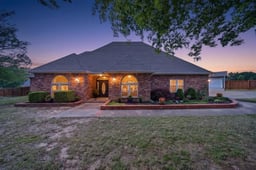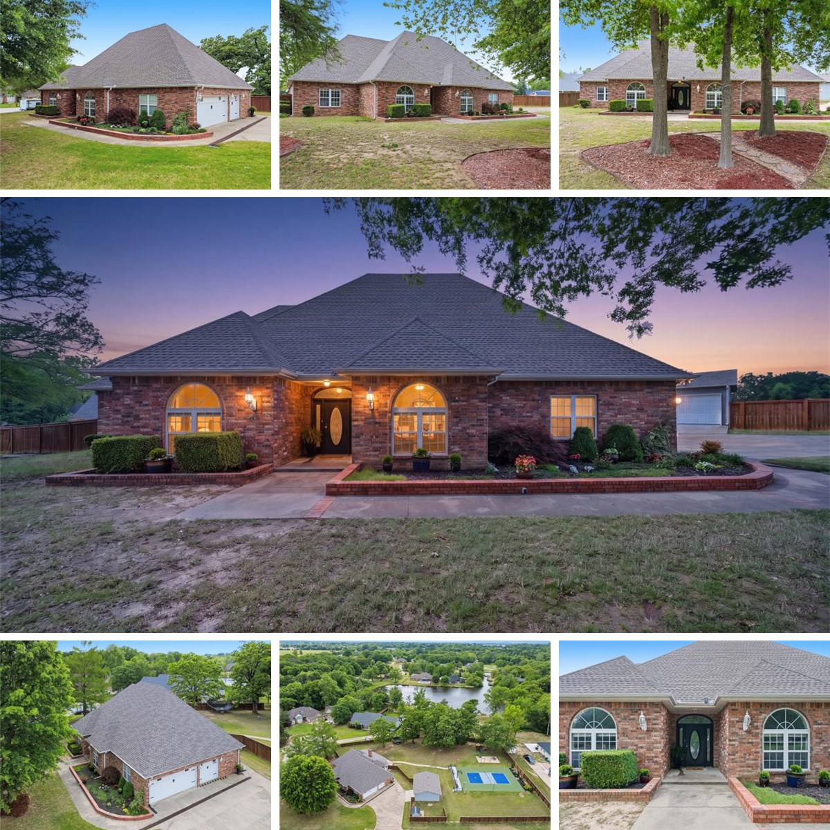 Stunning Luxury Brick Home on expansive double Lots in Oakwood Addition! Welcome to this beautifully updated 3-bedroom, 2 full bath, and 1 half bath home, perfectly situated on a quiet cul-de-sac with mature trees and a shared fishing pond with a private fishing dock. Designed with both comfort and elegance in mind, the home features a spacious and versatile layout, including an office, formal dining room that can easily serve as a den or additional living space. Beautifully updated kitchen with custom cabinets, crown molding and gold hardware. Granite countertops and modern hex tile backsplash and stainless steel appliances. The bright sunroom offers the perfect spot to relax and enjoy views of the serene surroundings. The primary suite is a true retreat, boasting a spa-like bath complete with a luxurious wet room, freestanding soaking tub, and an oversized dual steam showers and marble flooring. The utility room offers soft close cabinets and lots of storage. Upstairs offers, 2 bedrooms and a flex room that could serve as a fourth bedroom or game room/theatre room. Additional highlights include: New roof in 2024, Dual-zone HVAC systems less than 5 years old and dual hot water tanks for efficiency and comfort. Metal stud framing that offers enhanced structural integrity. Attached 3-car garage plus a detached 2 car garage/shop and separate storage building. Private pickleball and basketball court for recreation and entertaining. This property offers the perfect blend of luxury, functionality, and outdoor living—ideal for those seeking space, privacy, and high-end amenities. Great location just 45 minutes south of Tulsa.