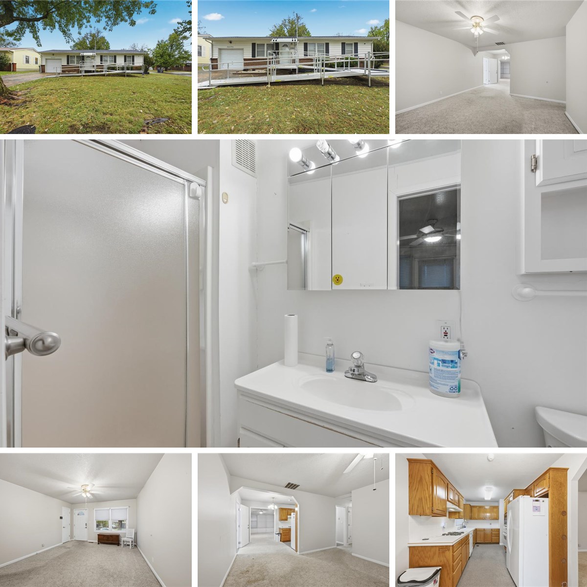 So much space in this home w/ 2nd living room addition and partial garage conversion -- all on a corner, fenced lot w/ mature trees and 2 storage sheds! The garage conversion holds the utility room and 1/3 garage is storage and accessed from the exterior. You will find original oak hardwood floors under most of the carpet! Country kitchen including refrigerator, disposal, range/oven and dishwasher. Two full bathrooms. Accessible ramp included. Convenient to highways & shopping.