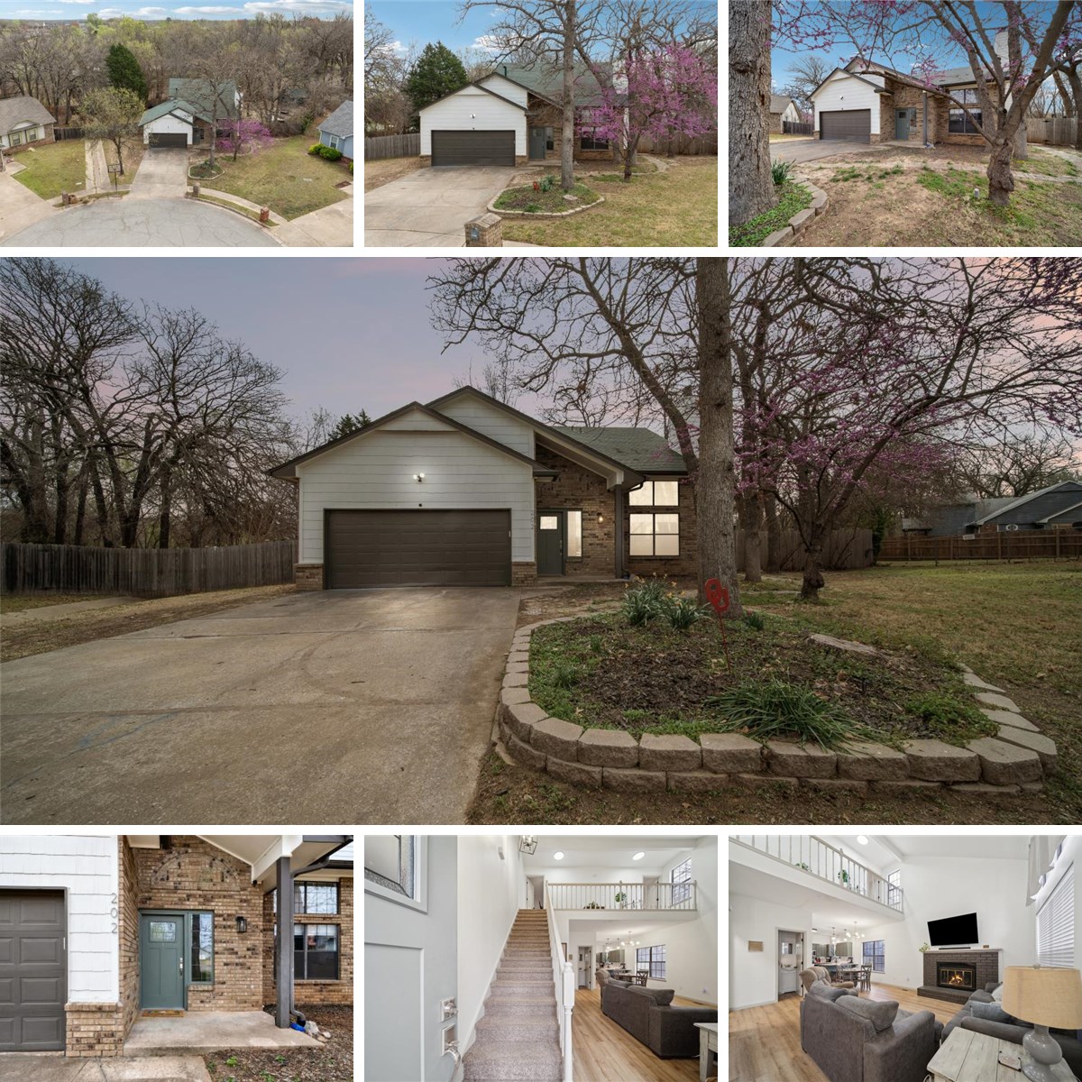 Tucked into a quiet cul-de-sac in the heart of Sand Springs, this charming 3-bedroom, 2.5-bath home blends comfort, style, and nature into one inviting package. Located in the sought-after Sand Springs School District and Pratt Elementary boundary, this two-story gem offers the space and serenity today’s buyers are looking for. Step inside and be welcomed by soaring ceilings, soft natural light, and a cozy fireplace that anchors the open living space. Upstairs, a catwalk overlooks the living room, adding both character and charm. The beautifully updated kitchen features painted cabinetry, quartz countertops, modern brass hardware, a sleek subway tile backsplash, and newer stainless appliances—an ideal space for baking cookies on the weekend or hosting holiday dinners. The spacious primary suite on the main level offers privacy and warmth with its rich flooring, neutral palette, and stylish en suite bathroom. Upstairs, two additional bedrooms are generously sized with large closets and direct access to an updated Jack-and-Jill bathroom. The magic continues outside. French doors lead to a large wooden deck, perfect for lounging under the string lights or firing up the grill. Mature trees and a fully fenced yard create a private oasis with a peaceful pond and waterfall. A detached HE/SHE shed or workshop might be a perfect little shop or just plenty of space for the lawn equipment Whether you're sipping morning coffee by the fireplace, watching sunrise on the back deck, or enjoying nature’s beauty in the backyard, this home is designed for both relaxation and everyday living. With nearby parks, schools, and a strong sense of community, this is more than just a house. Welcome Home