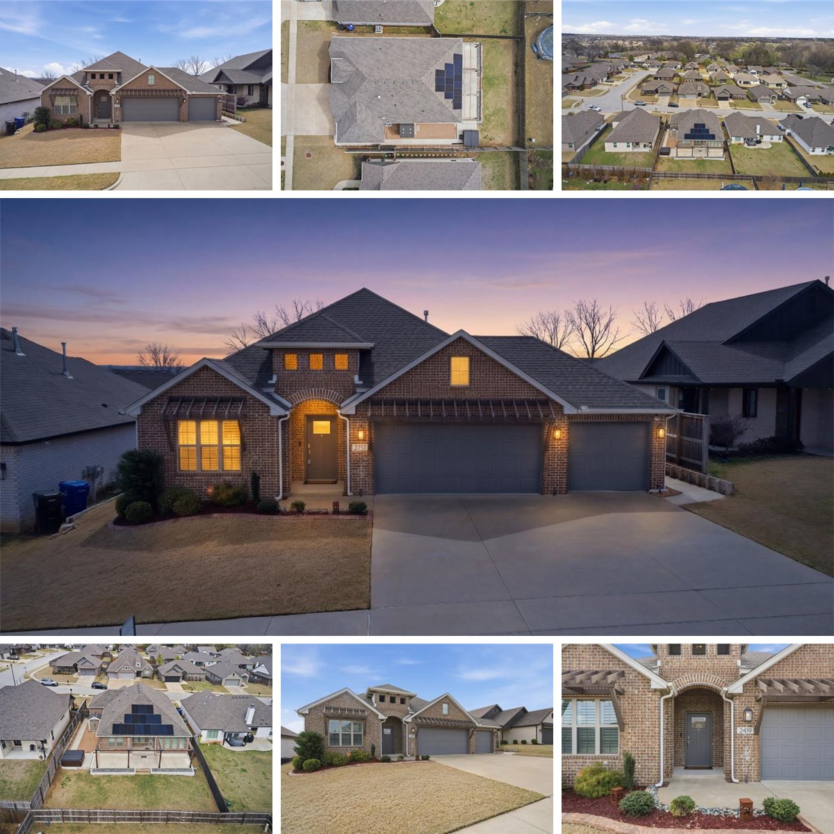Welcome to 2419 W Little Rock Court in Broken Arrow where upgrades meet effortless living. This 3/2/3 plus office home features all LVP and tile flooring - NO CARPET, quartz counters, soft close cabinets, sink plantation shutters, soft-close cabinetry, MyQ smart garage doors, and a beautiful electric fireplace for a clean, modern feel. Upgraded kitchen & Laundry appliances remain, and you will love having the electric garage lift providing easy access to a floored attic for easy storage with extra insulation. 3D 82" Sony Bravia TV in primary & 42" Sony Bravia living room TV to remain. Designed for entertaining, the upgraded backyard offers extended concrete, a pergola, hot tub, storage building, full fencing, and exterior lighting surrounding the home. Solar panels add efficiency, and a sidewalk connects the front and back for convenience. Move-in ready with thoughtful details throughout. Close proximity to highways, and the South BA Reasors.