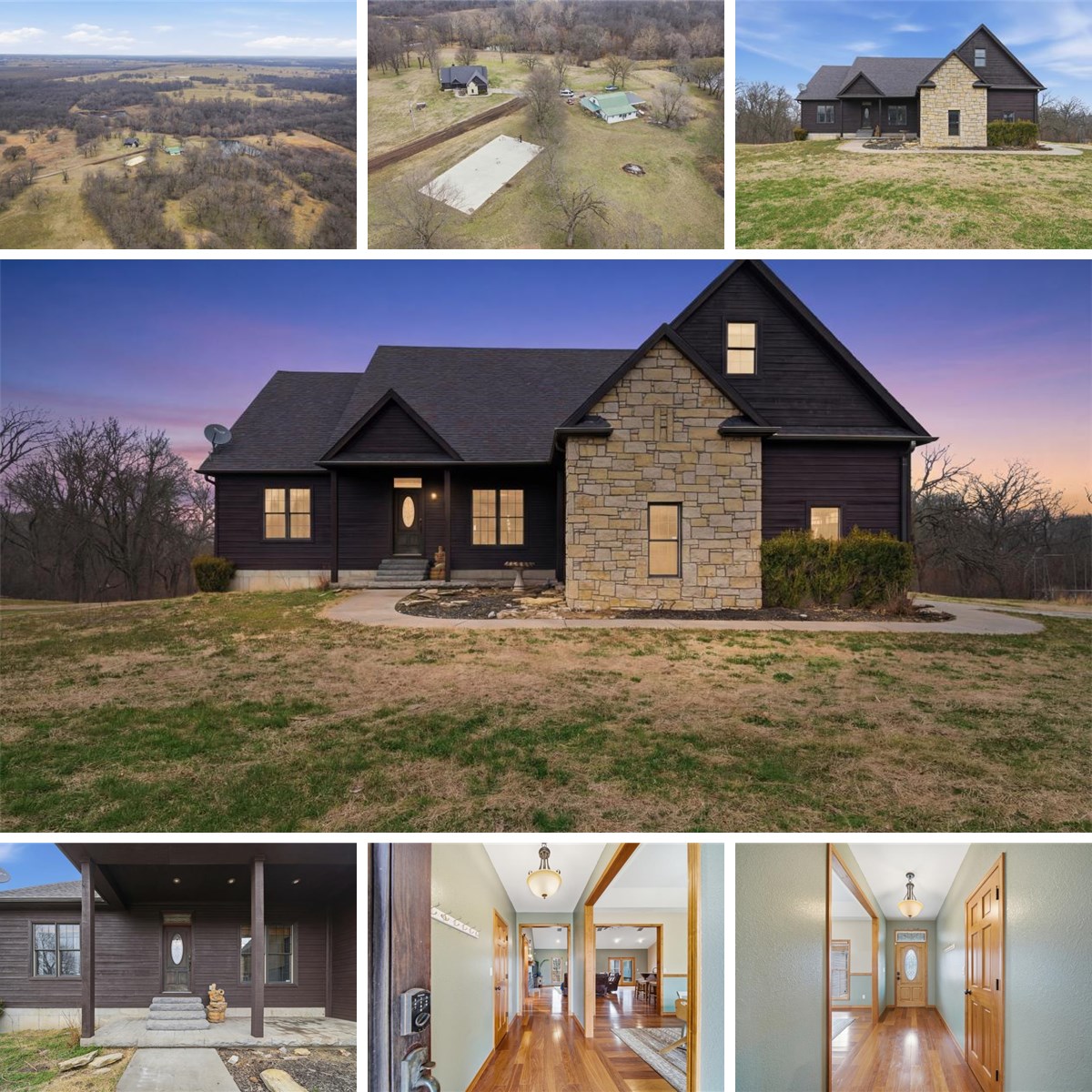 Welcome to this private, fully fenced ±50 acres of rustic, scenic beauty featuring two residences, stocked ponds, a creek, wooded areas, a basketball court, and a play set. The main home has a full walk-out basement and boasts five bedrooms and three full baths. The large living room opens to the impressive kitchen and formal dining room. Downstairs features a spacious living area, bedroom, and full bath, as well as a safe room, an abundance of storage, and bonus rooms. In addition to the main home, the property offers unlimited possibilities with a barndominium waiting for your finishing touches. It’s versatile, flexible, and an excellent spot for guests, a home-based business, an income-producing Airbnb, or an exclusive retreat space nestled on this special property. This is more than just a home; it’s a lifestyle with natural peace and privacy, thoughtful upgrades, and room to grow—ideal for those seeking a refined country retreat close to town and only 20 minutes from Grand Lake.