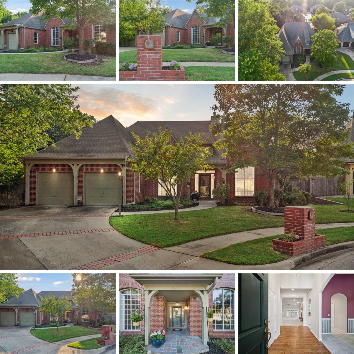 The spacious interior features plenty of upgrades, with 10ft ceilings, custom ornate trim, and beautiful wood floors. This flexible layout includes a huge office with large built-ins and a vaulted ceiling, large master ensuite with dual closets and walk-in standing tub, large rooms with walk-in closets, and a bonus room off the garage. A large dining area and breakfast nook complete the large living spaces, and provide access to peaceful outdoor living in the expansive screened-in covered patio. The home also features an oversized 2-car garage w/ epoxied floor, a charming second outdoor living space with a pergola overlooking the greenbelt, and a bonus storage or hobby room off of the garage.