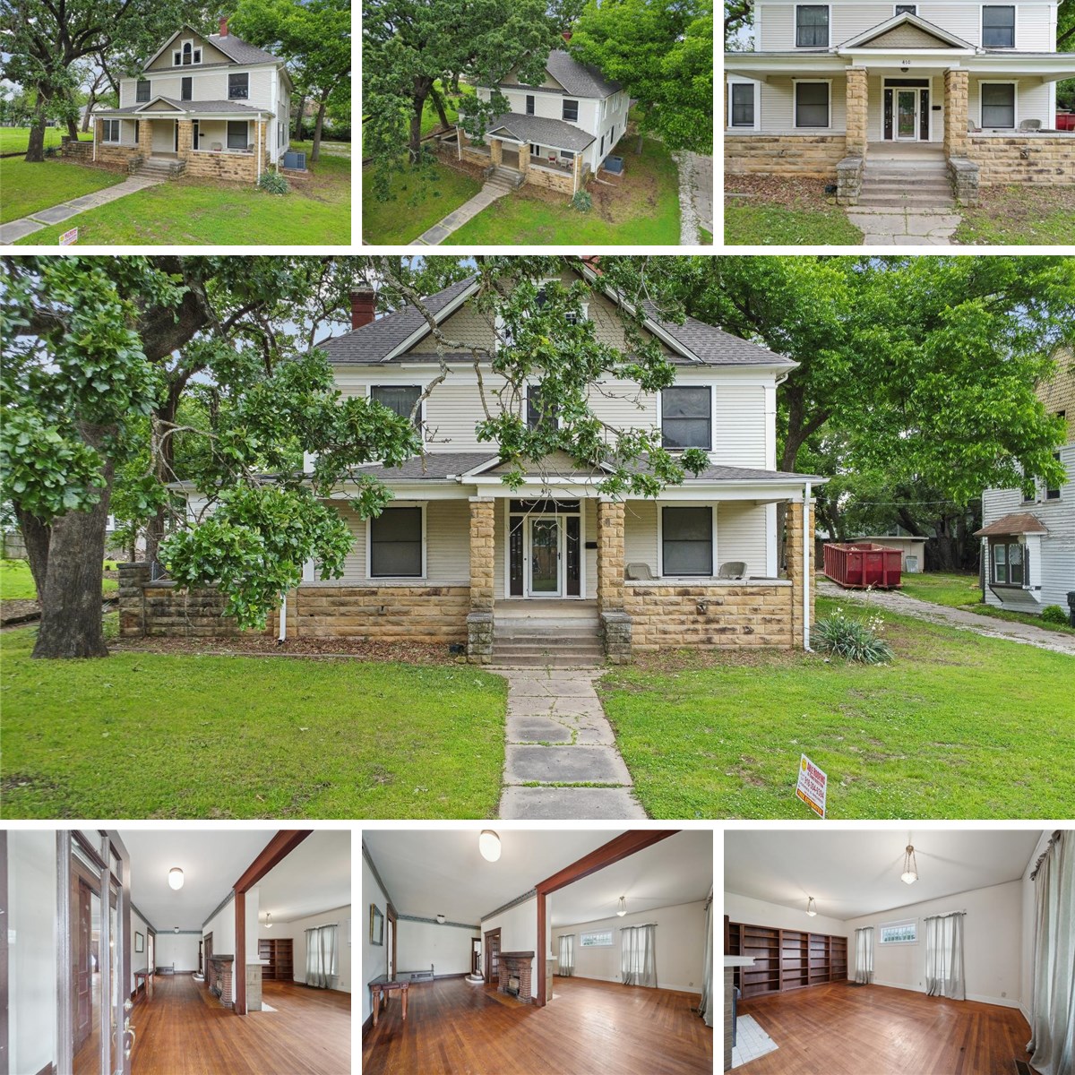 Welcome to this beautiful and spacious home featuring a brand NEW roof and plenty of room for everyone! This 5-bedroom, 2-bath home offers two large living areas and 3 fireplaces, a formal dining room, a butler's pantry, and a bright sunroom. You'll love the gorgeous original woodwork, built-ins, real hardwood floors, and soaring ceilings that create a light and airy ambiance throughout. Classic charm with many original design elements and fixtures still intact, showcasing the unique character of the home. The spacious hallways and thoughtfully designed layout provide a comfortable flow. Outside, enjoy a covered front porch, mature trees, and a backyard with two storage buildings. A carport with alley access is located at the rear of the home and is accessible via a shared driveway. Don't miss your chance to own this one-of-a-kind property that blends historic charm with practical living! Great location near downtown Okmulgee and 40 minutes south of Tulsa.