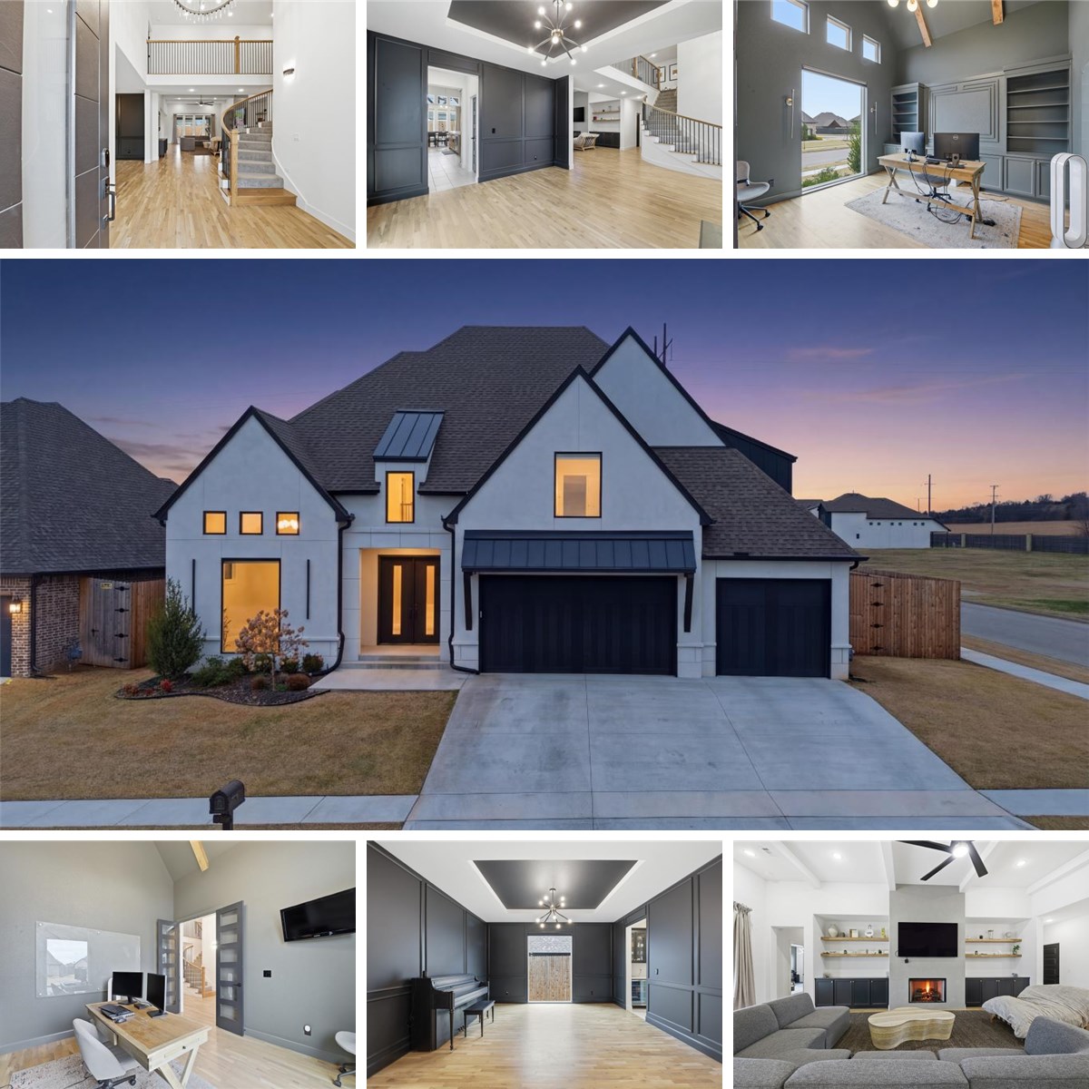 Come view this Stunning home in Tulsa's coveted Sunset Hills located in the Broken Arrow school district! Step inside to the 20ft grand entry leading to an impressive open concept layout and inviting Living room with gas fireplace, large picture windows and open to the chef's kitchen that's a dream with stainless steal appliances, oversized refrigerator and walk in butler's pantry complete with quartz counter tops. This home is loaded with designer finishes and well thought out spaces, 2 beverage coolers, mud room, large Laundry Room and an EV charger in the garage. The Study is complete with bookcases located next to a functional Formal Dining Room. Primary suite + 1 bedroom with private bath down. 2 bedrooms + 2 full bathrooms + large Gameroom + Media Room are all located upstairs. Upstairs bedrooms have direct access to a pullman bath, with the other upstairs bedroom being steps away from an additional full bath. The Game room's ample size allows for more entertaining or extended relaxation with private doors. Sunset Hills neighborhood features a pool, play-ground, tennis/pickleball courts and multiple catch and release stocked ponds.