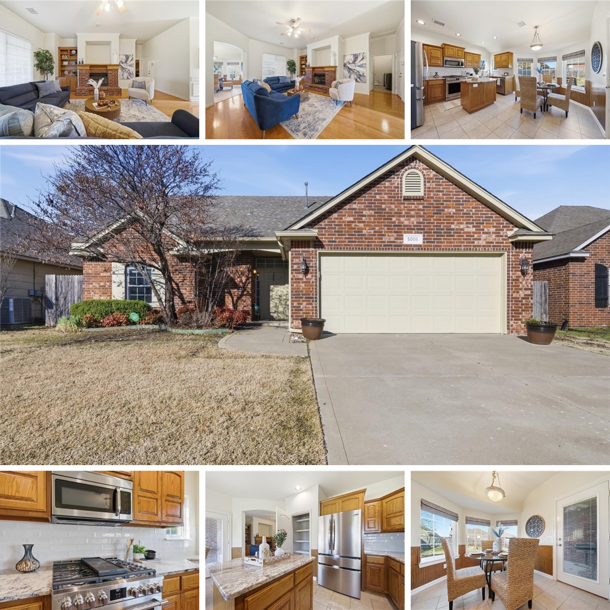Beautiful, well maintained, full brick home featuring high ceilings, an open layout, and a desirable split-bedroom floor plan. The kitchen offers granite countertops, island, pantry, Frigidaire Professional Series appliances that remain, plus a flexible dining area. Spacious primary suite has an updated shower, soaking tub, double sinks and a large walk-in closet. Rich wood floors have been installed in the living room and accentuate the cozy brick fireplace. Enjoy the back covered patio and ease of care with front and back yard irrigation system and raised garden beds. Major updates include roof (2023), HVAC (2022), interior and exterior paint (2026), kitchen countertops and appliances (2024–2025), primary shower (2025), hot water heater and Andersen replacement windows. Call today!