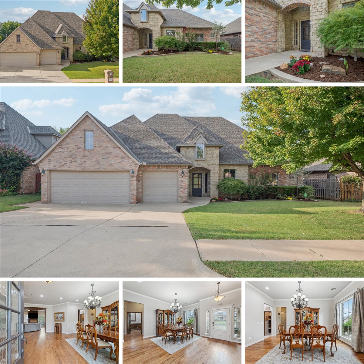 This meticulously maintained and distinguished Country French style residence is elegantly finished in a subtle shade of brick and cobblestones. The arched entry to the covered front porch not only enhances the architectural character but also establishes a gracious sense of welcome. Upon entry, one is greeted by exquisite real wood flooring, soaring ceilings, and a refined neutral color palette, all contributing to a warm yet sophisticated ambiance. The home artfully combines both stained and painted wood elements throughout the interior. The primary focal point of the main living area is a fireplace adorned with travertine tile and richly stained wood, with two expansive windows that admit abundant natural light plus views of the outdoor living space. The residence features an open layout with all bedrooms conveniently located on the main level, complemented by an upstairs bonus room measuring 393 sq ft and an accessible walk-in attic. You access the upstairs using the wide stairs with wood and iron railing.The primary suite includes a generous closet with custom built-in cabinetry, a full bath with a walk-in shower, claw foot vanity cabinet with two sinks & mirrors surrounded in a wood frame.The private study is enveloped in wainscoting and features an exceptional ceiling finished in wood, rendering it an ideal professional retreat. The kitchen features a central island, walk-in pantry, breakfast bar, stainless steel appliances and plenty of cabinetry and counter space. The adjacent utility room has double sinks and significant storage, ensuring optimal functionality. The property boasts an oversized, deep three-car garage, providing extensive accommodation for vehicles and additional storage. The private backyard is perfectly suited for entertaining or quiet relaxation, with lush landscaping, generous patio space extended with stone pavers. A small putting green contributes to a serene outdoor environment. Residents of the Belmont Farm Park Community benefit from exclusive access to a neighborhood pool, park, playground, walking trails, and a stocked pond, altogether making this residence an extraordinary place to call home.