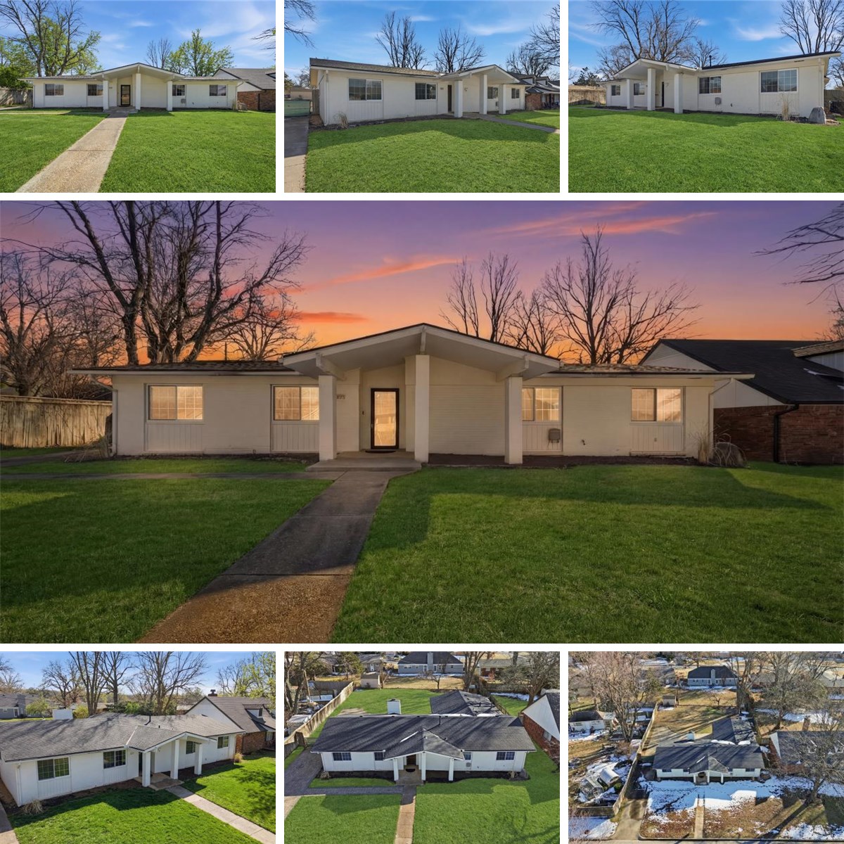 PRICE IMPROVED! A stunning mid-century modern home that blends timeless design with today’s comforts. Freshly painted and impeccably maintained, this residence is truly move-in ready. Situated on a generous lot & quiet cul-de-sac, it features a side-entry driveway, rear-entry garage, and an expansive backyard ideal for entertaining. Kids will love the charming log-cabin playhouse, and pets have their own fenced dog run. Inside, natural light pours through new vinyl windows, highlighting the beautiful wood-look tile flooring that extends throughout the home. A cozy wood-burning fireplace with gas starter anchors the living space, perfect for winter evenings. The bright, cheerful kitchen offers fresh paint, a new backsplash, gas cooktop, and butcher-block countertops. The primary suite is a serene retreat with an updated bathroom featuring an oversized shower and an elegant antique vanity. A spacious laundry/mudroom connects to the oversized garage, providing abundant storage and connects again to a FLEX ROOM, could be used as a Master sitting room, library, office, hobby room, nursery, or 4th bedroom! Major updates bring peace of mind, including a 30-year high-impact hail-resistant roof (2020), stove and dishwasher (2022), HVAC system (2021), and 50-gallon water heater (2021). Located in Van-Fields, this home is grandfathered into the neighboring Sungate community—giving you access to the Sungate pool and park. Opportunities like this are rare. Schedule your private showing today, because this exceptional property will not last long.