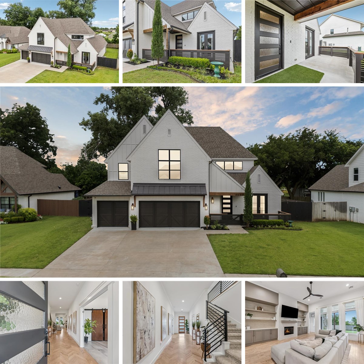 Refinished hardwoods just completed July 25th. This home has undergone a complete transformation, blending thoughtful design, modern upgrades, and timeless materials into a space that feels both luxurious and truly livable. Fresh exterior paint and a newly added gated front patio create a private outdoor retreat, anchored by a sleek fireplace and TV wall—an entertainer’s dream. Inside, updated interior paint sets a crisp tone throughout. The front office makes a statement with oversized tile flooring, a custom walnut slab desk, and Rob Key double iron doors—elevating work-from-home like never before. The kitchen shines with refinished cabinetry, new champagne hardware, a sleek touch faucet, and a newly added walnut coffee bar. A micro cement backsplash and custom range hood complete the space, alongside brand-new appliances—including a stove and dishwasher with air fryer features. In the primary suite, boho-patterned carpet complements a built-in walnut headboard that stays with the home. The ensuite bath feels like a high-end spa with dramatic micro cement shower and countertops, paired with custom grain-matched walnut vanity doors. Additional highlights include walnut slab closet doors, updated fixtures and finishes in the hall bath, and a truly rare wellness setup. The upstairs loft is a fully equipped home gym with Tonal system, while a separate retreat features an 8-person cedar sauna, wallpapered entry, and cold/hot plunge station. The garage includes an air compressor and dedicated workspace. Located in a desirable neighborhood with walking trails, ponds, two pools, a clubhouse, gym, and Bixby North Elementary—all just steps away—this home is more than a place to live. It's a fully updated, design-forward lifestyle.