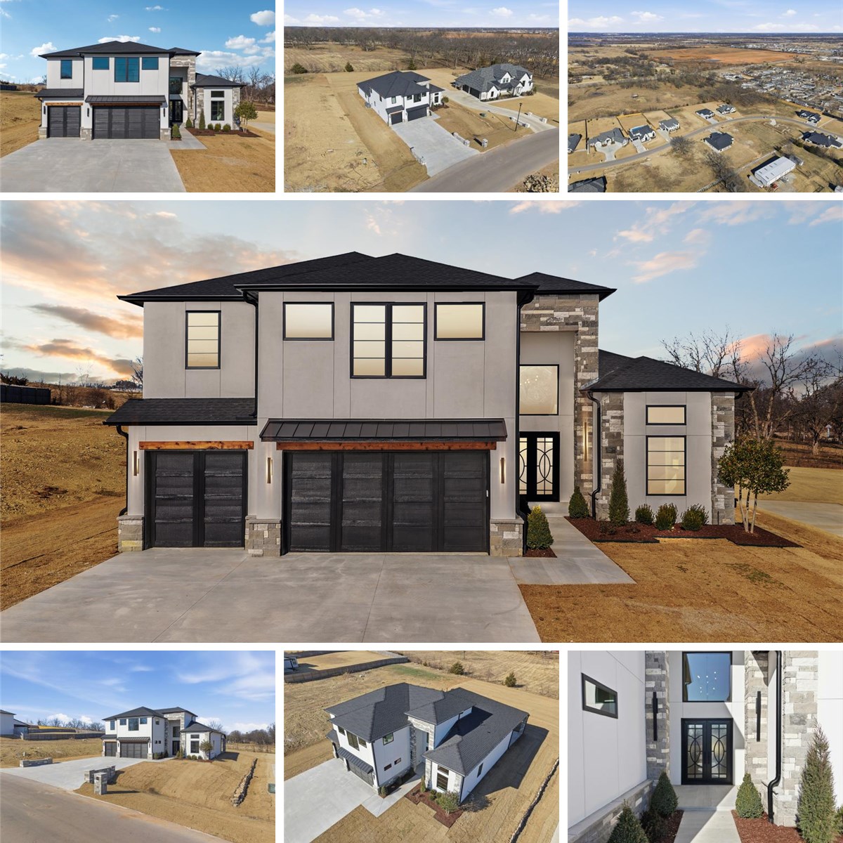 Gorgeous, contemporary 2-story stucco newly-built home tucked in a luxury neighborhood w/ half-acre lots off 151st & Sheridan. You'll love the soaring ceilings, blonde hardwoods, custom cabinetry and high-end quality finishes and amenities! The open floorplan exudes luxury and this is one house you will definitely want to see! Master suite plus one bedroom & bath down plus office; three bedrooms & one double-sided bath up w/ game room & wet bar and space for drink fridge. Living room has granite fireplace surrounded by cabinetry and lighted shelving, blonde oak hardwoods and wall of windows looking on to the large covered back patio. Kitchen has locally crafted custom cabinetry, large island w/ space for seating, professional grade appliances, double wall oven & gas cooktop plus walk-in pantry. Luxurious master suite off kitchen w/ soaker tub, divine shower, three vanities, xl closet packed w/ shelves, clothing racks, big mirror, dresser island, and pull-down racks; private door to covered patio. Large laundry room packed w/ cabinetry, countertops and sink. Tankless hot water, sprinkler system, and walk-in attic storage. Drop zone off garage. Enjoy the extra space in a really cool neighborhood. This home will absolutely delight the most discerning buyer!
