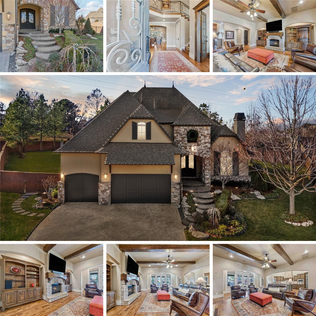 Step into this fabulous 4-bedroom retreat tucked into a prestigious gated neighborhood, where soaring vaulted, beamed ceilings and natural light create an instant wow factor. Designed for everyday comfort and effortless entertaining, this home features spacious living areas and refined finishes, including granite throughout, in a timeless style. Enjoy the warmth and ambiance of three-stone fireplaces, thoughtfully placed to elevate cozy nights and elegant gatherings. An elegant study provides the perfect work-from-home or reading sanctuary, while a beautiful mix of plantation shutters and Roman shades adds layered sophistication and privacy. Outside, your private backyard oasis awaits, centered around a stunning pool, professionally landscaped grounds with mature trees, and provides a serene backdrop. To top it off, you'll love the oversized three -car garage featuring a sleek epoxy-finished floor-perfect for extra storage, hobbies, or workshop. Each of the bedrooms have walk-in closet and en-suite bathrooms, a true blend of luxury, comfort, and unforgettable curb appeal.