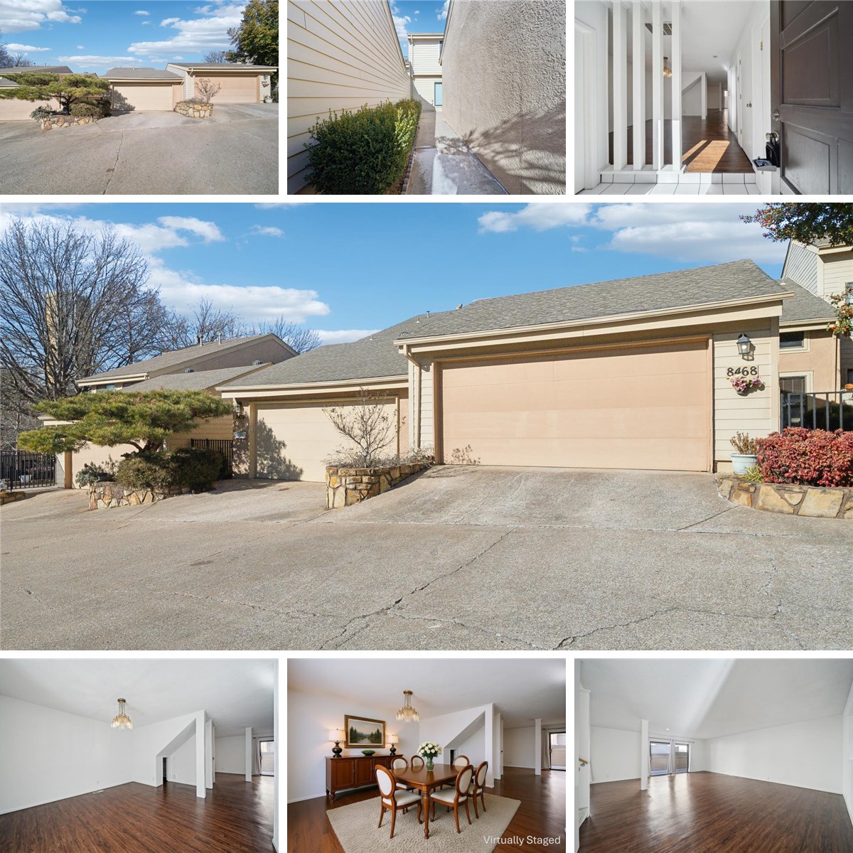 BRAND NEW ROOF! Move-in ready south Tulsa condo in a gated community featuring 3 bedrooms, 2.5 baths, updated kitchen with breakfast nook, formal dining, spacious living room, and an upstairs flex area. Enjoy a private deck, courtyard, and two-car garage. Updates since 2020 include luxury vinyl flooring, new refrigerator, renovated shower in the primary bath, Anderson windows, window coverings on most windows, wrought iron fence in the front courtyard, and new garage door opener. Community amenities include a pool, clubroom, gated access, and tennis courts. Prime location near Tulsa Hills, ORU, shopping and dining. Bring your offer!