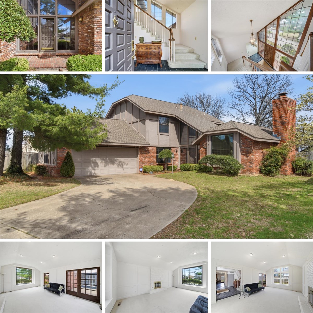 Spacious South Tulsa home in the highly desirable Jenks School District offering 2,437 square feet (Court House) of living space on a large corner lot. This 3-bedroom, 2.5-bath home features a living room with a vaulted ceiling and fireplace, a second living area open to the kitchen, a formal dining room, a private office, and multiple French doors leading to backyard and side-yard patios. Large windows throughout the home fill the space with natural light and highlight the home’s unique architectural character. All three bedrooms and two full bathrooms are located upstairs, including a generously sized primary suite with a walk-in closet. The two-car garage includes an additional rear garage door, providing access to the backyard and ideal for extra parking, storage, or workspace. Conveniently located near shopping and dining, this home offers a great opportunity for buyers looking to add their own updates or investors seeking a remodel or rental opportunity.